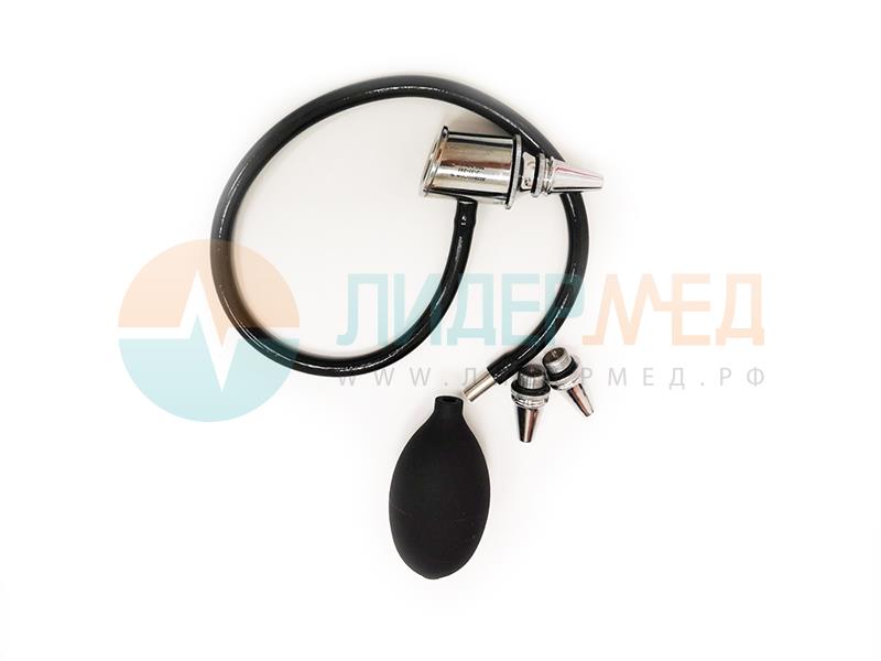 Состоит из полого цилиндра, один конец срезан наискось под углом 45° и закрыт выпуклой линзой, что предупреждает появление световых рефлексов, на другой насаживаются ушные воронки разных размеров с утолщениями, обеспечивающими герметическое закрытие наружного слухового прохода. На боковой поверхности вмонтирован держатель резиновой трубки с баллончиком, при помощи которого можно вызвать колебания барабанной перепонки путем сгущения и разрежения воздуха в наружном слуховом проходе.
