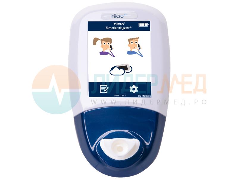Smokerlyzer портативный анализатор окиси углерода в выдыхаемом воздухе.Использование в программах борьбы с курением, общей практике, школах, фармакологии, научных исследованиях, патронаже и акушерстве. Измерение окиси углерода (синонимы - угарный газ, CO) в диапазоне 0-500 ppm (число молекул CO на миллион частей воздуха). Вычисление:- %COHb (карбоксигемоглобин) - процентное содержания CO в крови.- %FCOHb (карбоксигемоглобин плода) - процентное содержания CO в крови плода (является дополнительным стимулом беременным женщинам к отказу от курения).Прибор для определения выдыхаемого оксида углерода включен в приложение №9 приказа 916н от 15.11.2012. Стандарт оснащения пульмонологического отделения.
