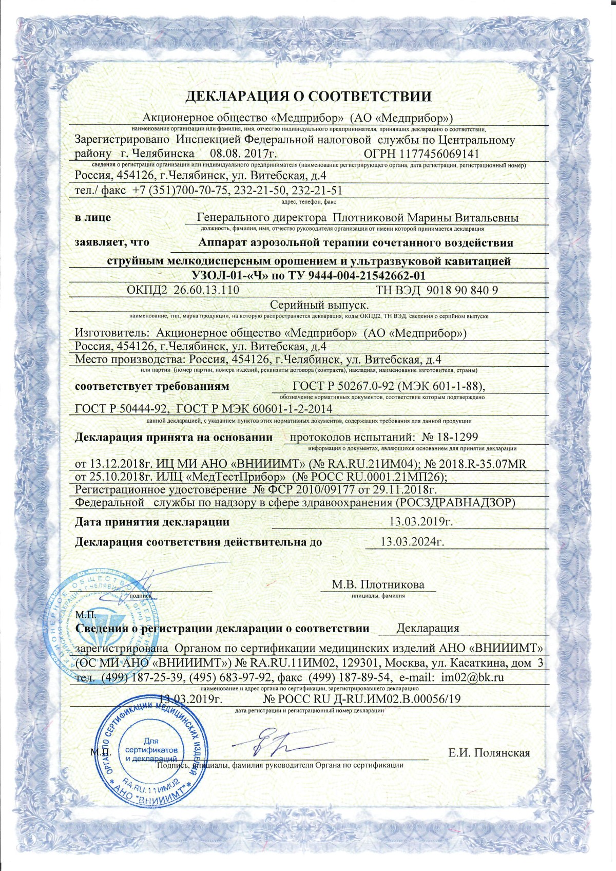 Аппарат предназначен для подачи раствора лекарственных препаратов в виде тонкой струи, активированной низкочастотным ультразвуком, неинвазивным способом непосредственно на пораженную ткань (слизистых оболочек ЛОР-органов, ожоговой поверхности, раневой поверхности).