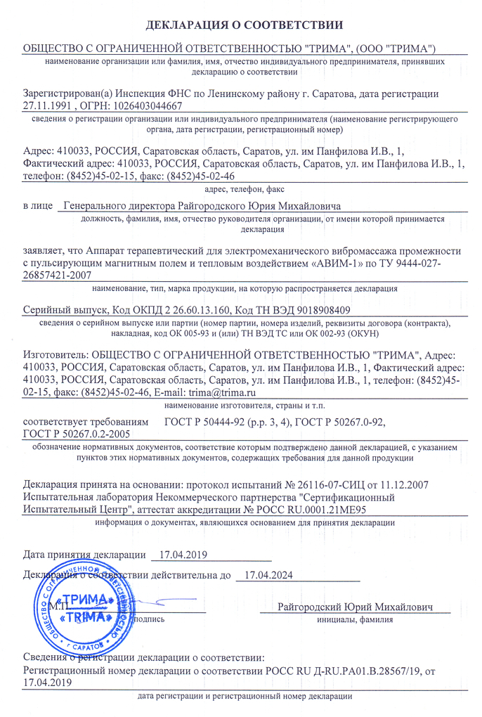 Аппарат вибромассажа в виде подушки-вибратора с функцией магнито и термотерапии при заболеваниях органов малого таза. Предназначен для проведения процедур разночастотного вибромассажа на фоне пульсирующего магнитного поля и теплового воздействия. Применяется в гинекологии и урологии в медицинских учреждениях, а также в домашних условиях.