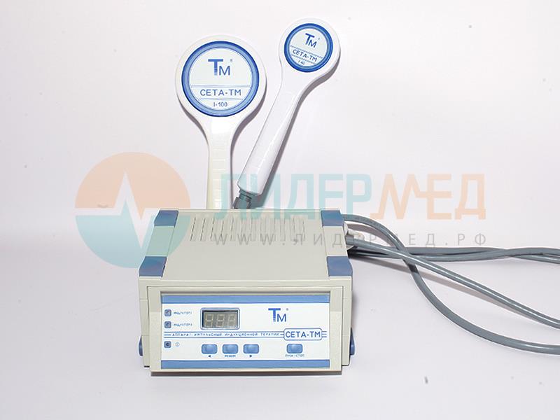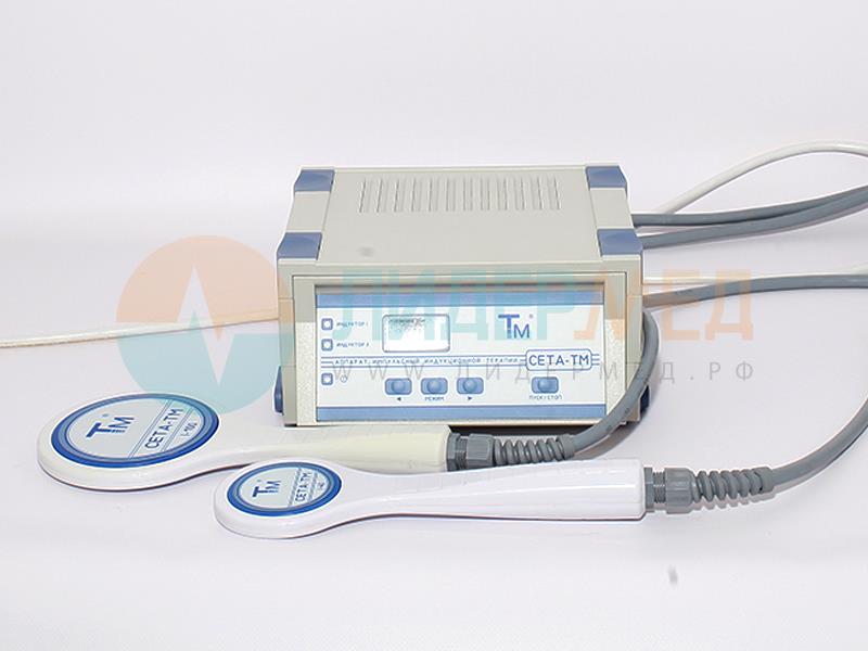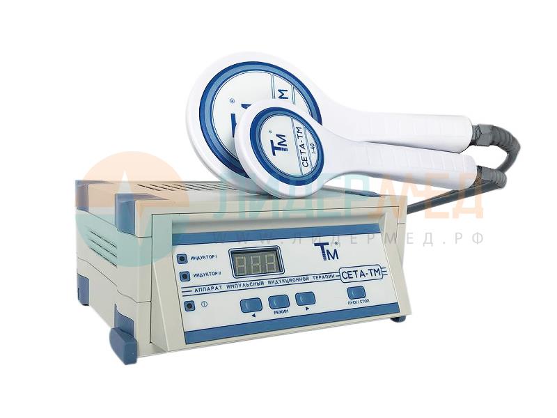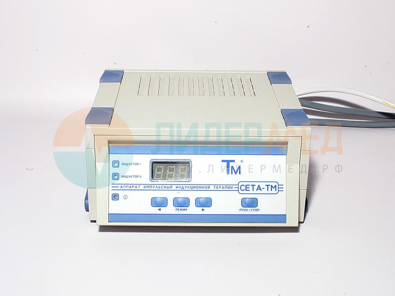 Аппараты серии "СЕТА-ТМ" предназначены для бесконтактного воздействия низко- и среднечастотным импульсным магнитным полем интенсивностью от 0,2 до 1,2 Тесла при заболеваниях и травматических повреждениях периферической и центральной нервной, сердечно-сосудистой, опорно-двигательной, пищеварительной и мочеполовой систем. Полный аналог Сета-Д-1 (индуктор 40 и индуктор 100). Аппарат "СЕТА-ТМ"- с двумя индукторами, индуктора работают поочередно.