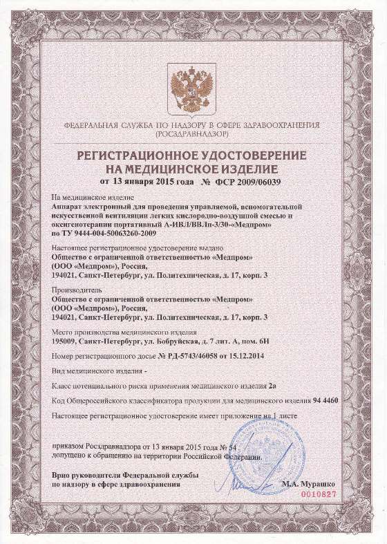 - минутную вентиляцию при проведении ИВЛ кислородно-воздушной смесью в пределах от 0,7 до 25 л/мин, с допускаемыми отклонениями от установленных значений - 15%;
