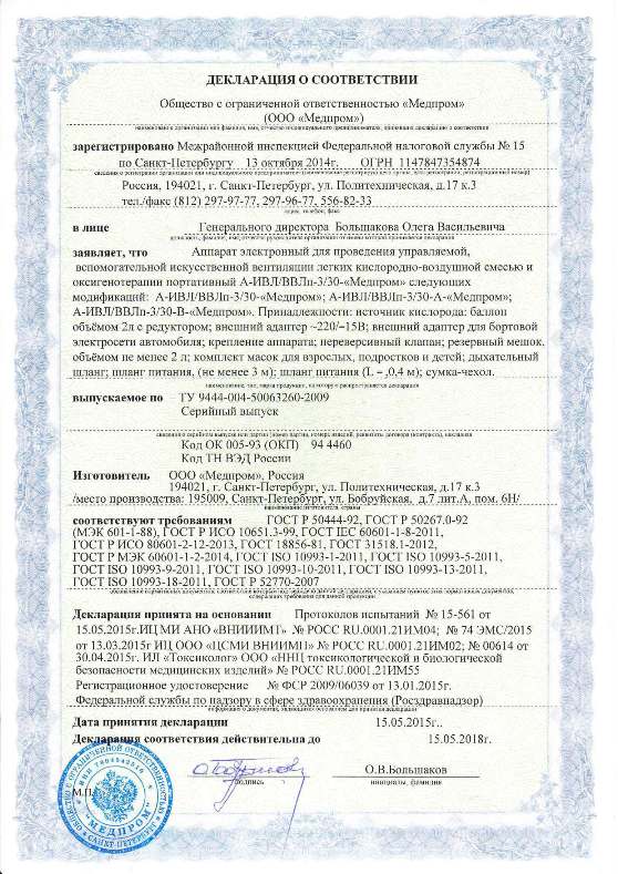 - оксигенотерапию (ингаляцию) кислородом и кислородно-воздушной смесью с возможностью установки паузы на выдох и контролем попытки вдоха в паузе для взрослых и детей.