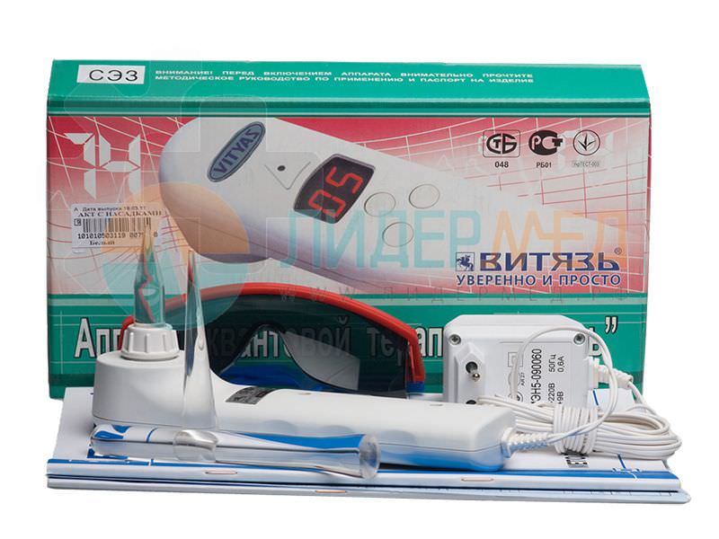Аппарат квантовой терапии "Витязь" ("АКТ-01") предназначен для безболезненно лечения широкого спектра заболеваний методом воздействия на ткани, клетки, точки акупунктуры организма магнитным и электромагнитными полями квантового излучения видимого красного 650 нм и инфракрасного 850 нм диапазона волн. Квантовый аппарат Витязь может применяться как для лечения целого ряда заболеваний, так и в целях профилактики их возникновения и общего оздоровления организма. Помогает организму активизировать внутренние резервы и справиться с болезнью. Применяется в физиотерапевтических кабинетах, больницах и санаториях, в косметологии и в домашних условиях.