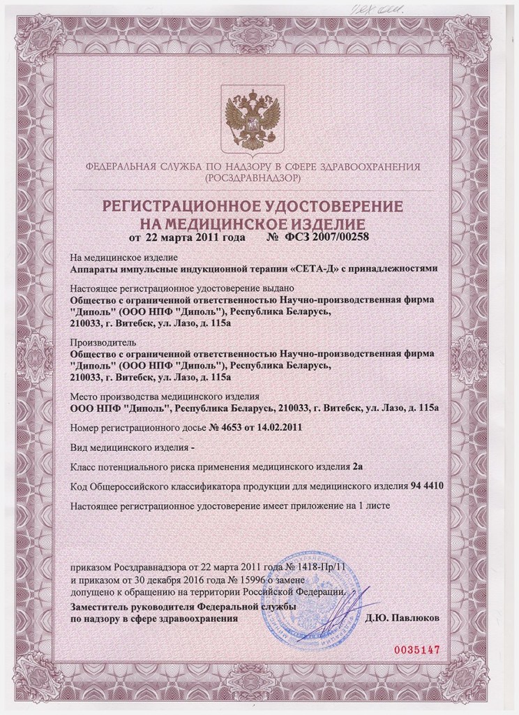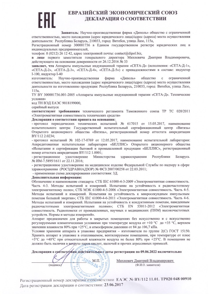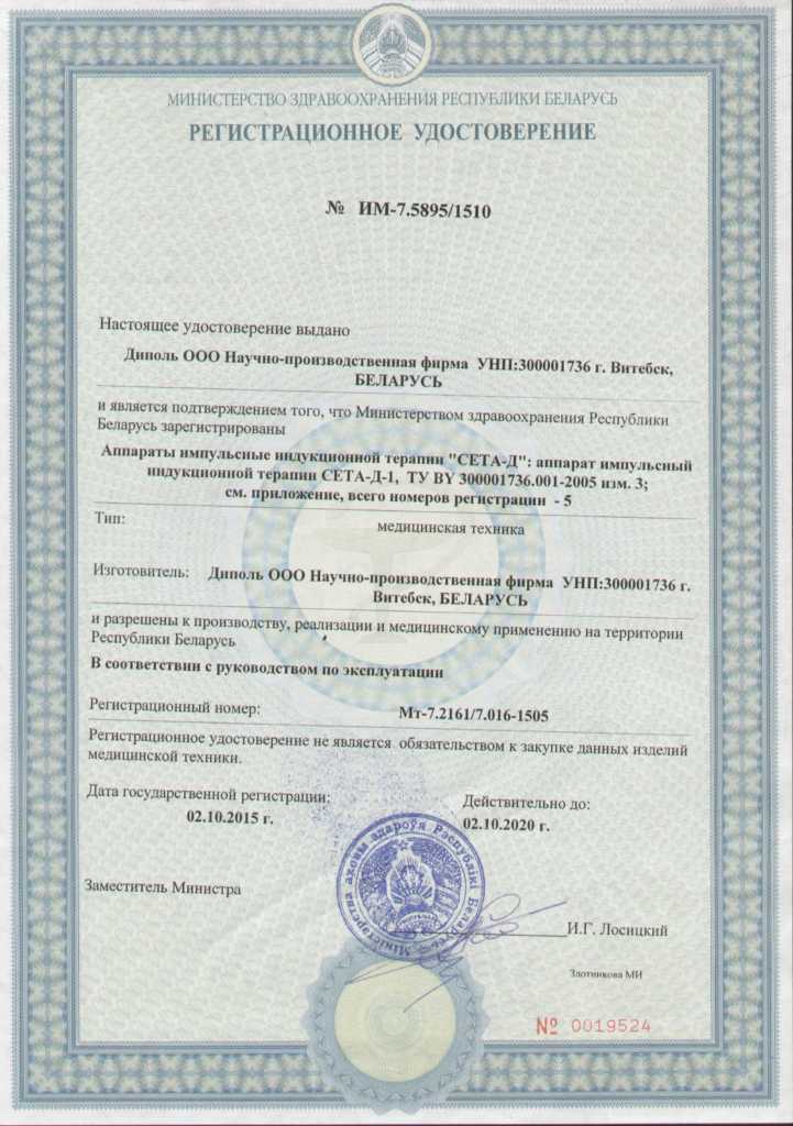 Аппарат импульсной индукционной терапии «Сета-Д» предназначен для бесконтактного воздействия низко- и среднечастотным магнитным полем интенсивностью от 0,2 до 1,2 Тесла при заболеваниях и травматических повреждениях периферической и центральной нервной, сердечнососудистой, бронхолегочной, опорно-двигательной, пищеварительной и мочеполовой систем. Может применяться в условиях медицинского стационара, поликлиники, на дому, в санаторно-курортных учреждениях.