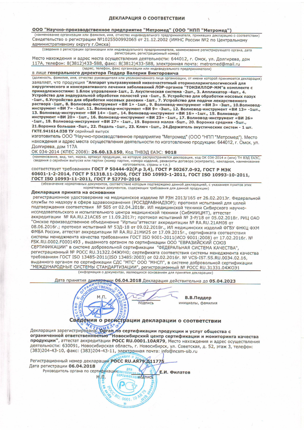 Предназначен для контактной УЗ обработки наружного слухового прохода через лекарственный препарат при лечении острого и хронического наружного отита. |  |