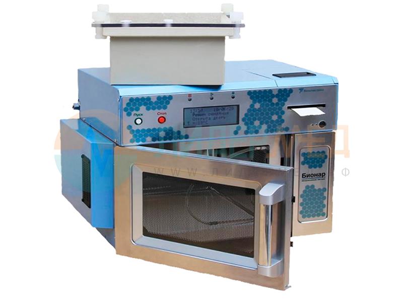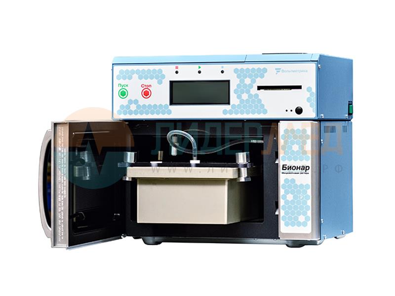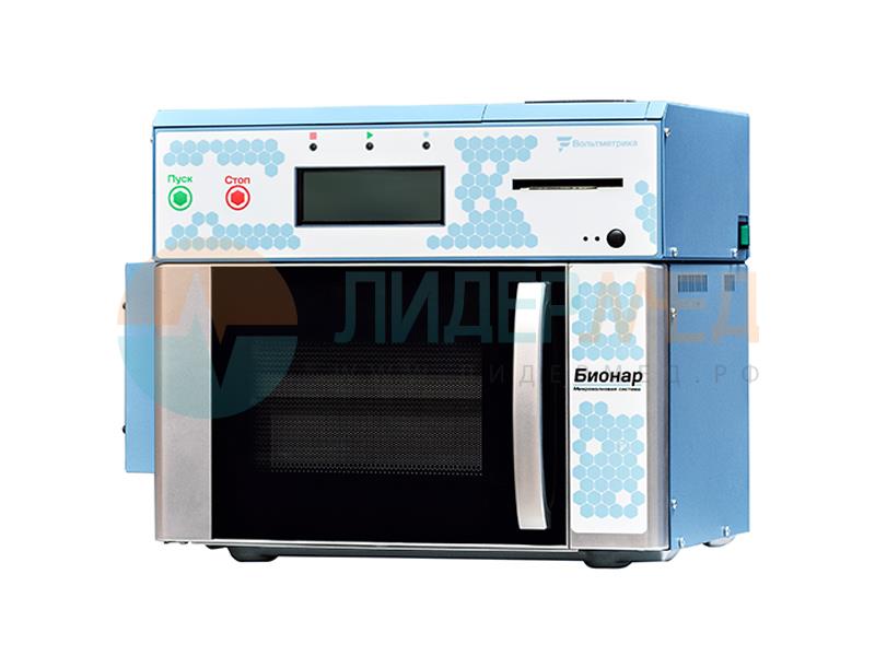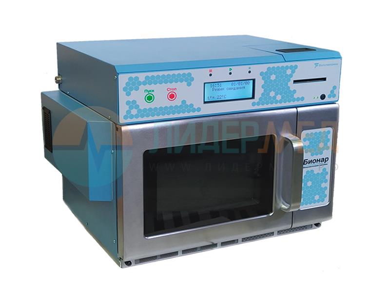 1. Стойка из нержавеющей стали для микроволновой системы «Бионар»: Выдвижной столик для удобства загрузки контейнера Колёсные опоры со стопором для удобства размещения системы Отсеки для хранения контейнера и расходных материалов в нижней части стойки Интегрированная электронная система дозирования воды в контейнер Система контроля электропитания установки 2. Оптический датчик наличия контейнера. 3. Бесконтактный оптический датчик температуры контейнера. 4. Встроенная УФ-лампа (дополнительное обеззараживание поверхностей камеры). 5. Встроенный СВЧ-детектор (сигнал оператору в случае превышения нормы микроволнового излучения вне камеры). 6. Пакет расширенных опций: Цветной 7” сенсорный экран