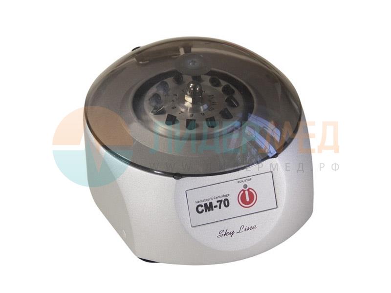 Гематокритная лабораторная центрифуга CM-70, выполняющая функцию разделения различных растворов на фракции и определяющая гематокритное число крови, оборудована ротором углового типа на 12 капилляров.