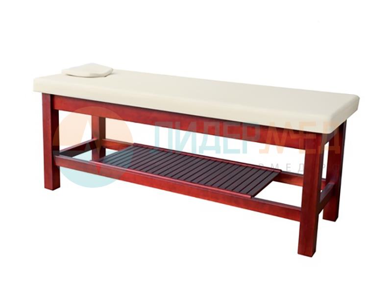 Прочная кушетка полностью изготовлена из экологически чистого массива бука. Обивка выполнена из дышащего высокопрочного материала – кожа Skai. В нижней части стола встроенная полка для хранения принадлежностей.