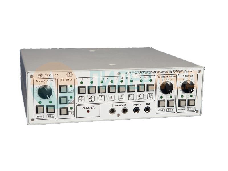 Аппарат электрохирургический двухчастотный 2,64МГц/440кГц ЭХВЧ-100-МТУСИ«Универсальный» предназначен для коагуляции биологических тканей токами высокой частоты монополярным (контактным: резание, коагуляция, фульгурация; и бесконтактным: спрей-коагуляция) методом и биполярным методом. Применяется в различных областях хирургии, дерматологии, эстетической медицины, косметологии и других сфер медицинской деятельности.- микрокоагуляция (склерозация, эпиляция);- резание;- коагуляция;- фульгурация;- спрей – коагуляция;- холодная спрей коагуляция;- импульсный режим.
