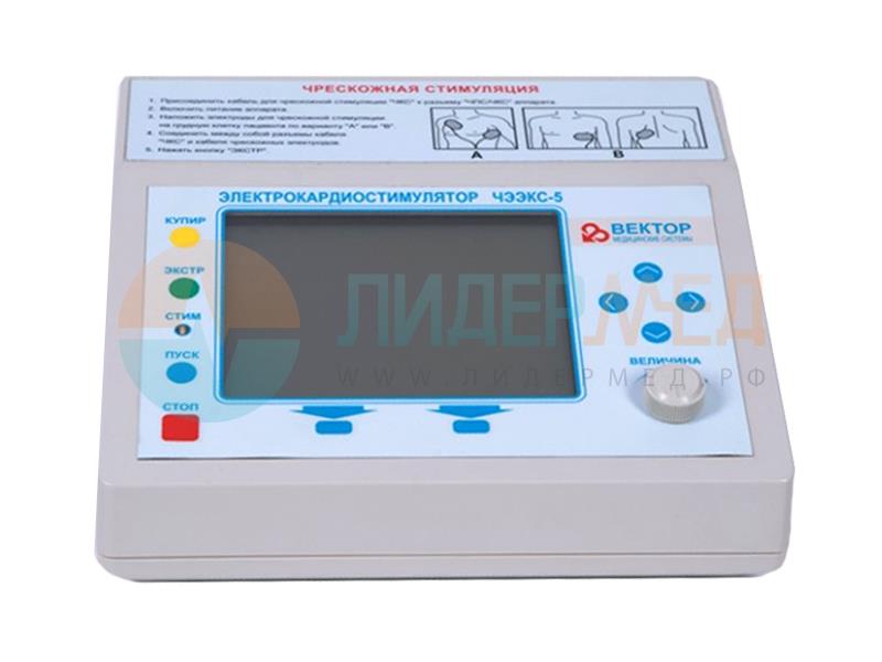 Электрокардиостимулятор для трансвенозной эндокардиальной, чреспищеводной и наружной (чрескожной) электрической стимуляции сердца ЧЭЭКС-5 «Вектор-МС» предназначен для:- диагностики и лечения нарушения ритма сердца;- проведения временной электрокардиостимуляции в любых условиях (в том числе и полевых) и поддержания сердечной деятельности в критических ситуациях (скорая помощь), с одновременным контролем ЭКГ по двум отведениям;- электрофизиологических исследований сердца;- интраоперационного определения порога стимуляции и импеданса нагрузки кардиостимулятора.