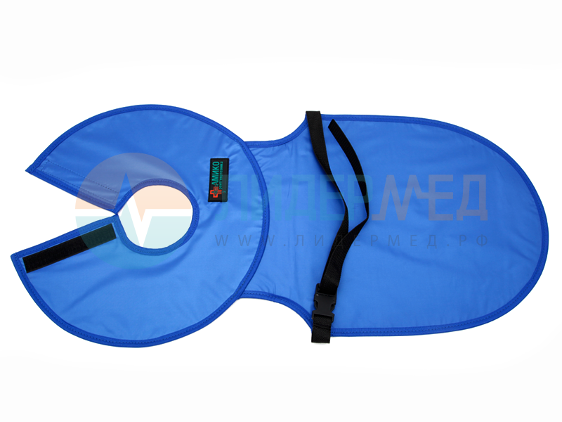 Фартук односторонний защищает тело ребенка спереди, включая плечевой пояс, от области горла до голеней. Рекомендуется применять при снимках зубов, головы и конечностей в комплексе с воротником для дополнительной защиты щитовидной железы. Свинцовый эквивалент — 0,35 мм Pb. Рост - 120-134см.