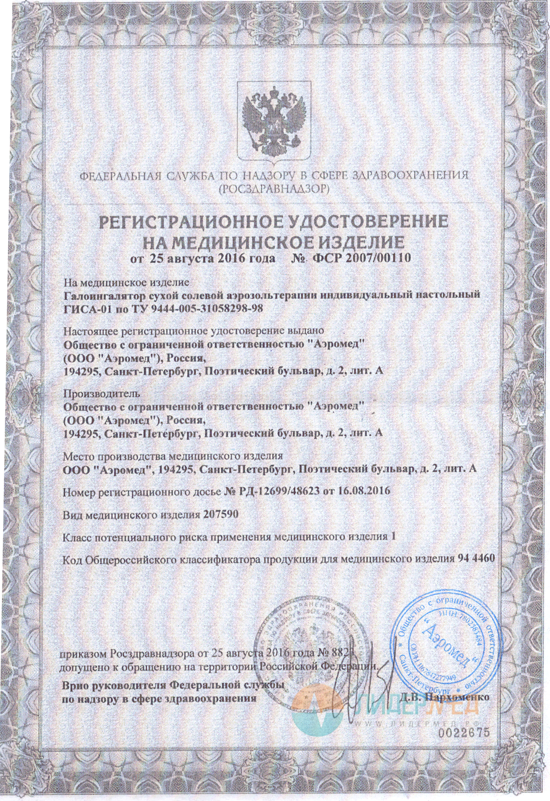 Средняя наработка на отказ ингалятора не менее, ч.