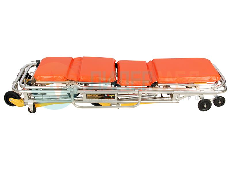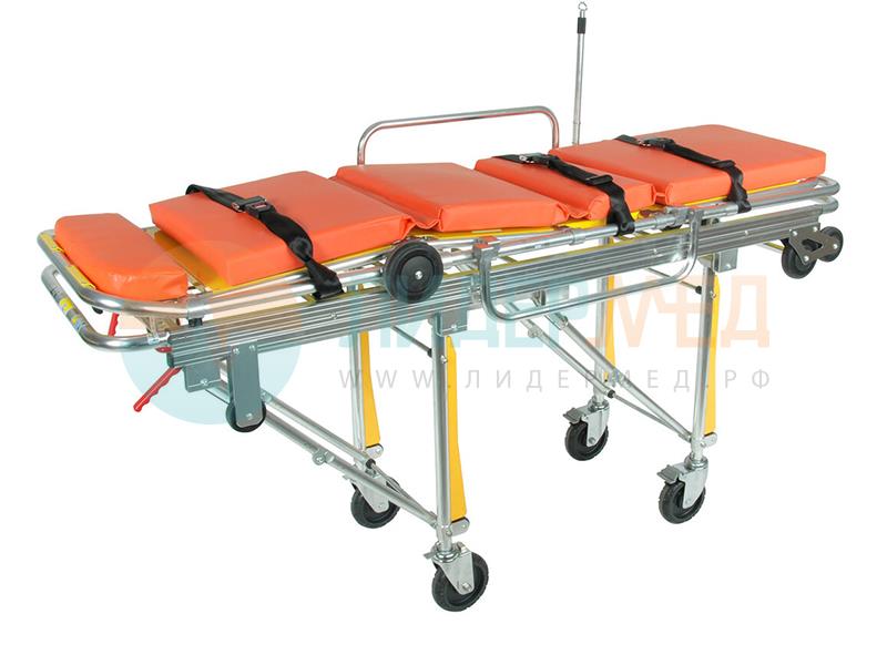 Тележка-каталка предназначена для перемещения пациента в транспорте скорой медицинской помощи и в условиях больничных учреждений. В комплекте со съемными кресельными носилками для транспортировки пациентов в стесненных условиях: малогабаритных коридорах, лифтах и лестничных маршах.
