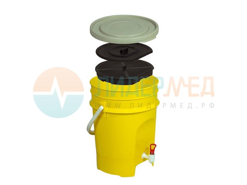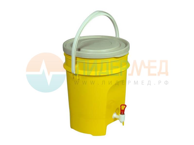 ЭМ-контейнер для дезинфекции медицинских материалов - цилиндрическая 15 литровая емкость желтого цвета, предназначенная для дезинфекции материалов медицинскими растворами для последующей утилизации.