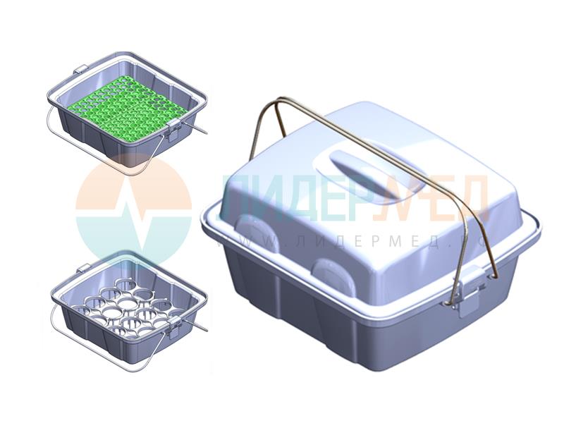 Укладка-контейнер полимерный представляет собой корпус с парой симметрично расположенных ручек и крышкой и предназначена для транспортировки и переноса пробирок и флаконов с биологическими растворами и другими жидкостями в различных лечебно-профилактических учреждениях.Обеспечивает санитарно-эпидемиологическую безопасность при транспортировке биологического материала внутри помещений и между отдельными корпусами в ЛПУ, на станциях переливания крови, СЭС и т.д.100 (200) пробирок или 16 флаконов 250 мл (банок).