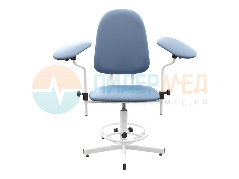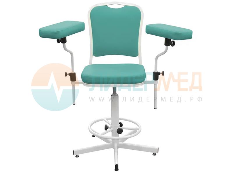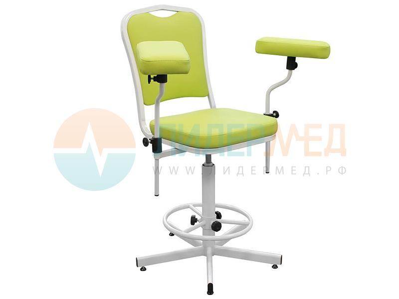 Кресло для взятия крови и анализов на винтовой опоре. Предназначено для медицинских учреждений. Цвет – кремовый, белый, чёрный, бежевый, светло-зелёный, зелёный, синий, светло-серый.