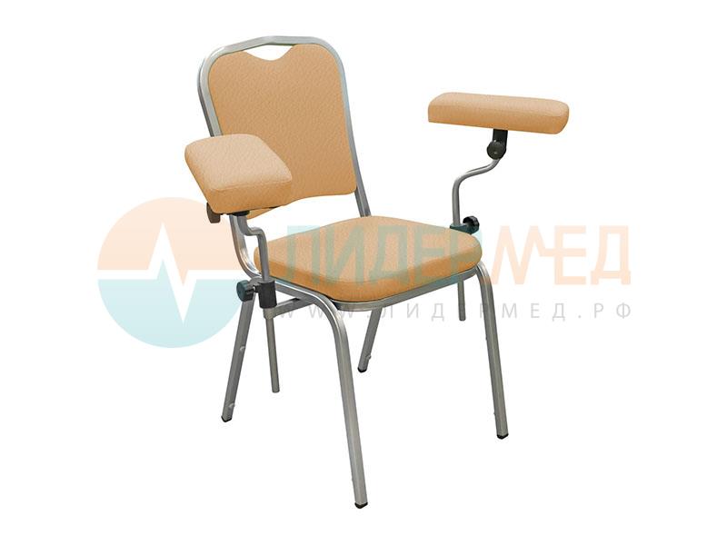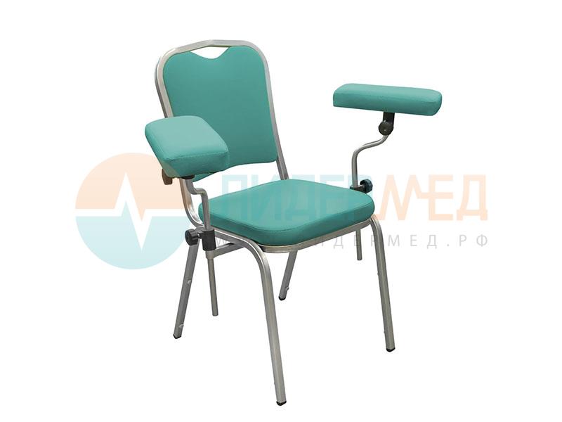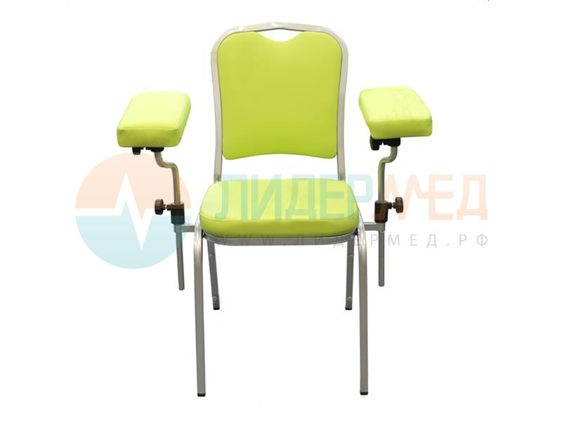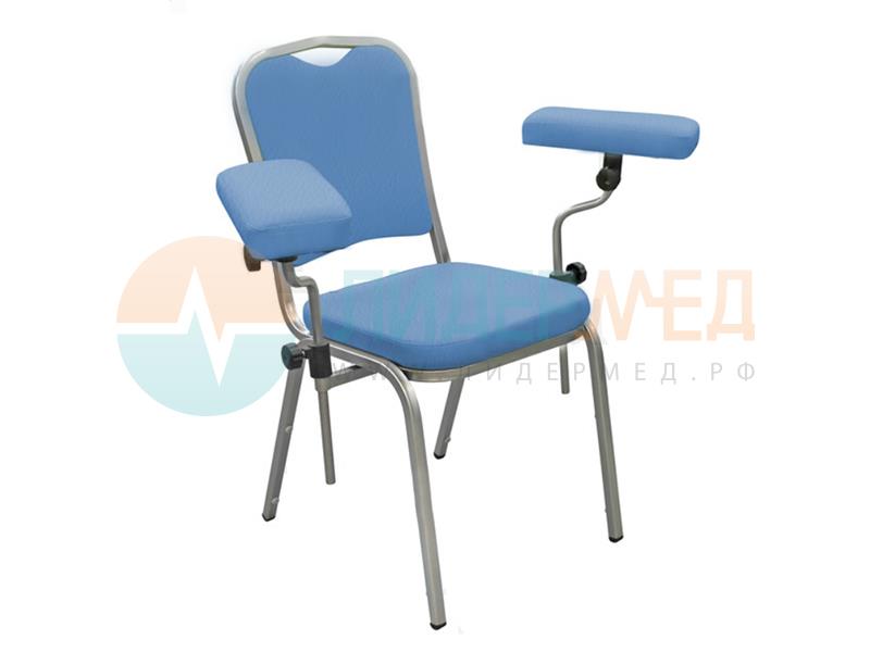 Кресло донорское ДР-01 с двумя подлокотниками, на опорах предназначено для комфортного размещения на нем донора при проведении забора крови, взятии анализов и прочих процедур.