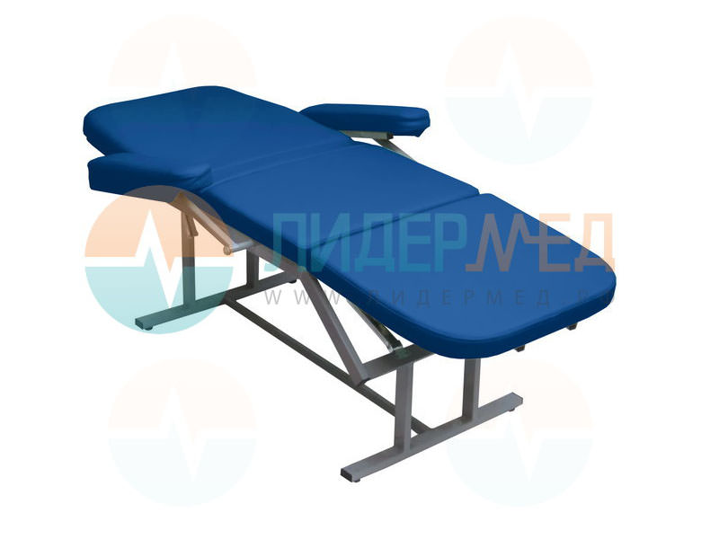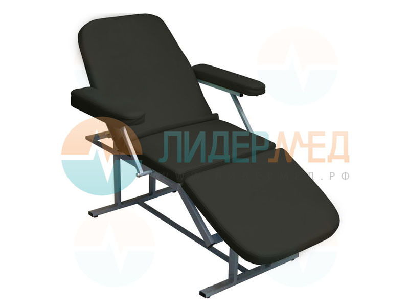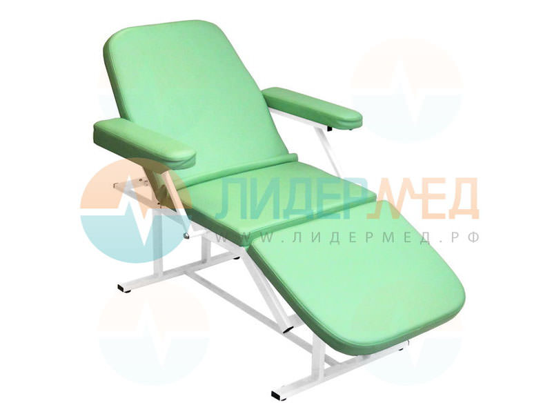 Трехсекционное кресло для забора крови (донорское) с анатомическими подлокотниками. Устанавливается в учреждениях скорой помощи, медицинских кабинетах различной направленности, можно также использовать для проведения косметологиеских и физиотерапевтических процедур, требущих от пациента положения "полулежа". Цвет: бежевый, фисташка, синий, серый, черный.