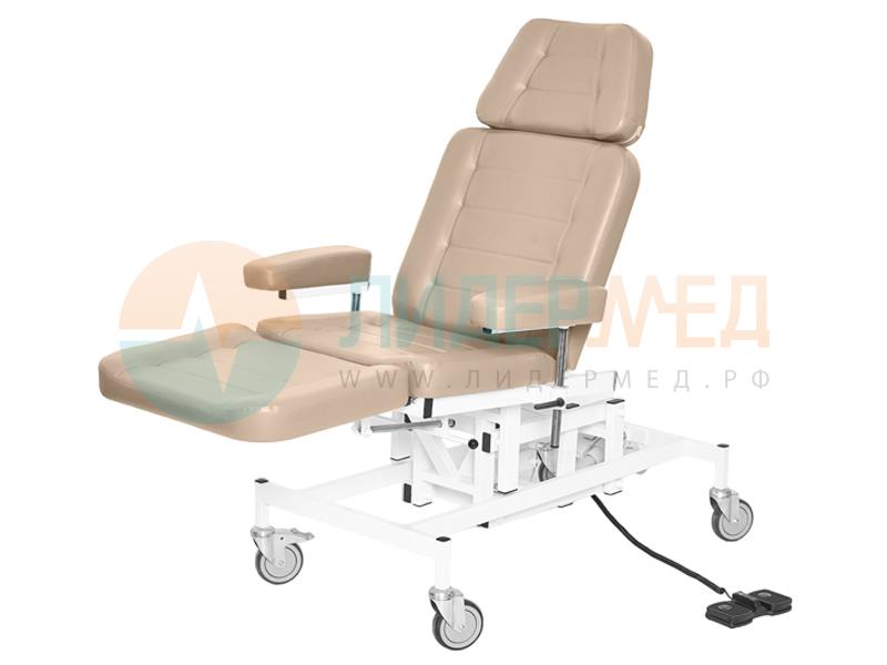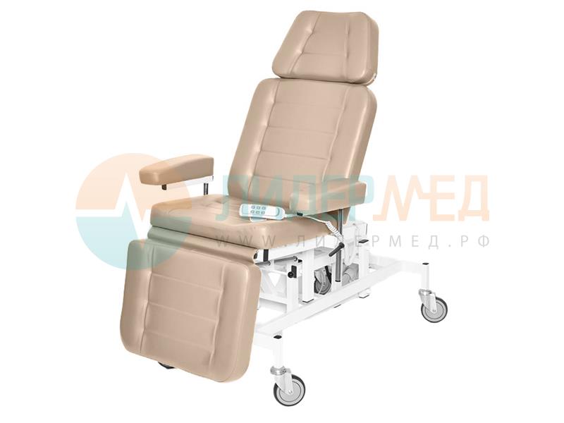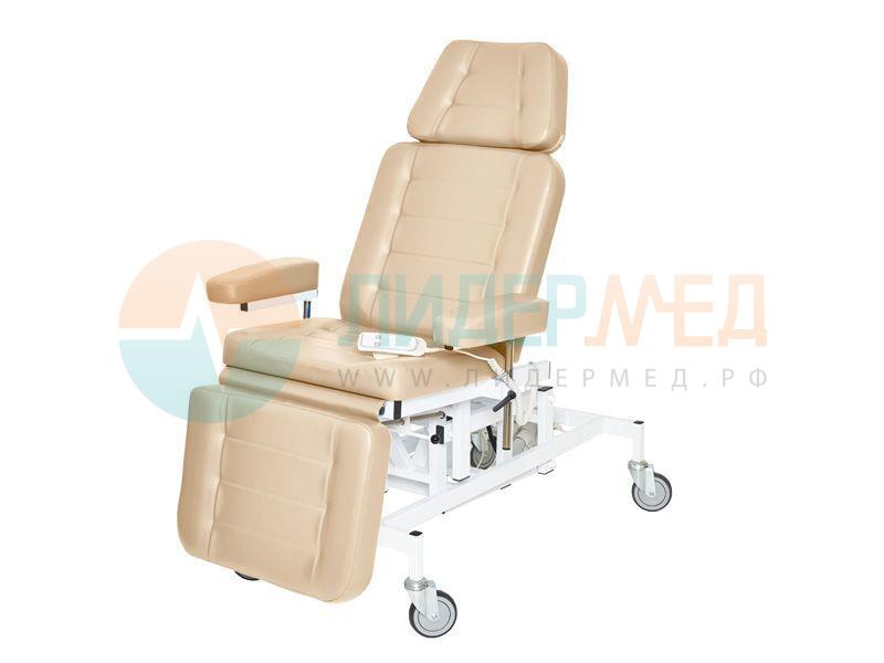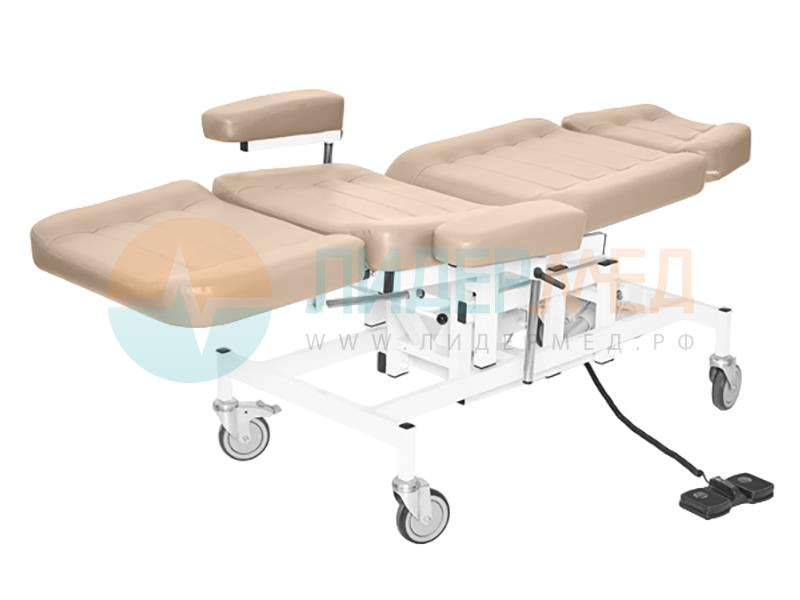 Предназначено для комфортного размещения пациента во время проведения лечебно-диагностических процедур.Габаритные размеры - 1400х890х1500-1820 мм.Высота – электропривод, пульт ножной или ручной.Спинная секция - от 0° до 84° - газовая пружинаНожная секция – от 0° до -90° - «клиновой упор».Подлокотники – 2 вида: узкие и широкие, съемные, регулируются по высоте и углу поворота, ручка-фиксатор.