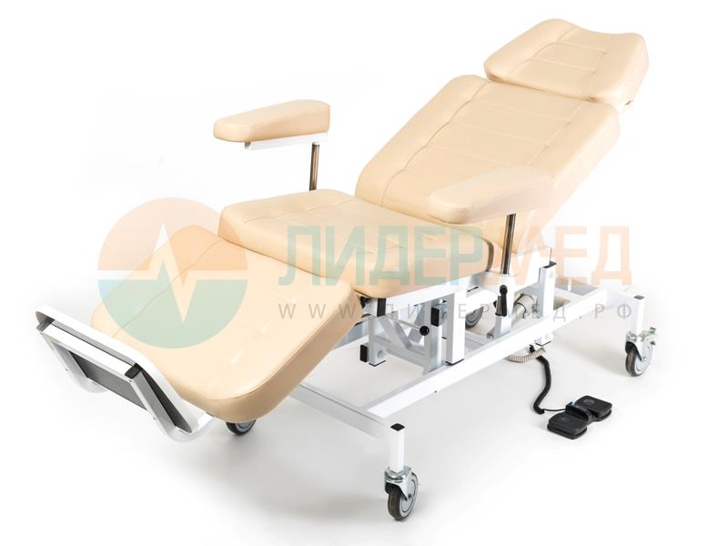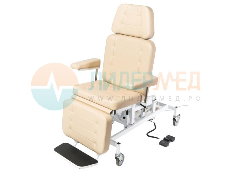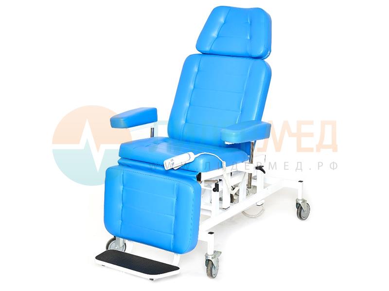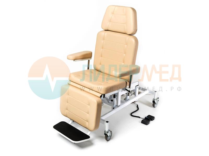 Медицинское кресло мод. К-045э с независимой регулировкой спинной и ножной секций и электроприводом высоты предназначено для проведения осмотров и проведения процедур в учреждениях здравоохранения.Габаритные размеры – 1600х890х1500-1820 мм.Высота – электропривод, пульт ножной или ручной.Спинная секция - от 0° до 84° - газовая пружинаНожная секция – от 0° до -90° - «клиновой упор».Подлокотники – 2 вида: узкие и широкие, съемные, регулируются по высоте и углу поворота, ручка-фиксатор.