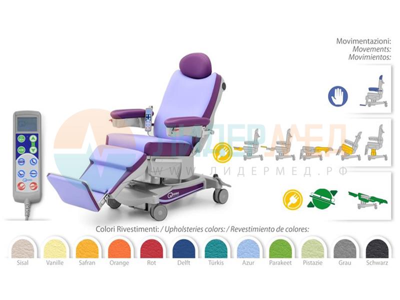 Многофункциональное кресло для взятия крови и диализа. Кресло применяется в условиях больниц, стационаров, пунктов переливания крови и других медицинских учреждений.