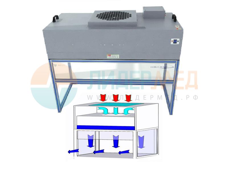 Ламинарные станции КВАЗАР с вертикальным потоком воздуха в рабочей зоне применяются при работе с препаратами и бактериальными культурами, когда необходима защита продукта и технологического процесса. Для очистки воздуха рабочей зоны от пыли и аэрозолей в ламинарном боксе организован нисходящий поток фильтрованного воздуха.