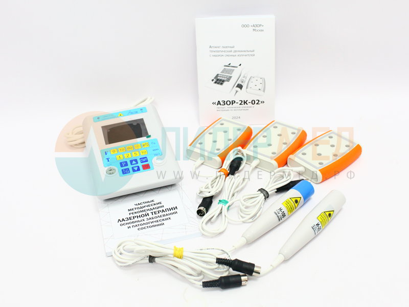 Аппарат лазерный терапевтический двухканальный с набором сменных излучателей АЗОР-2К-02 по ТУ 9444-002-34611264-2002 ФСР 2009/05839