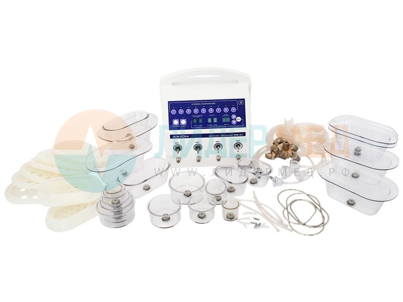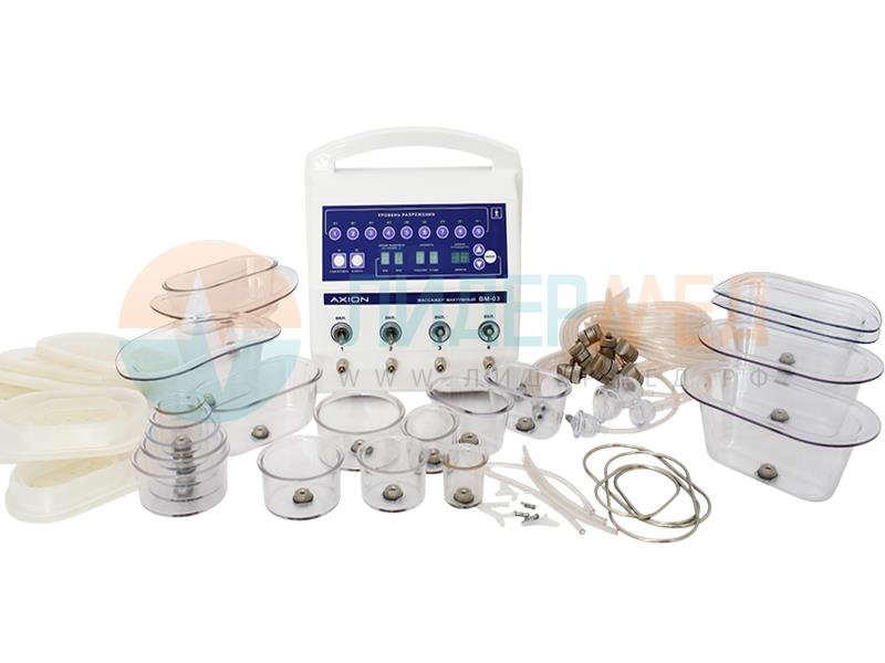 Массажер вакуумный ВМ-03 предназначен для проведения физиотерапевтических процедур, сеансов массажа, посредством разрежения (вакуума) создаваемого в прозрачных пластиковых банках. Процедура вакуумного массажа показана для лечения остеохондроза и обусловленных им заболеваний периферической нервной и сосудистой систем, опорно-двигательного аппарата. Массажер может применяться в физиотерапевтических кабинетах различных поликлиник и стационаров, а также косметологических кабинетах.
