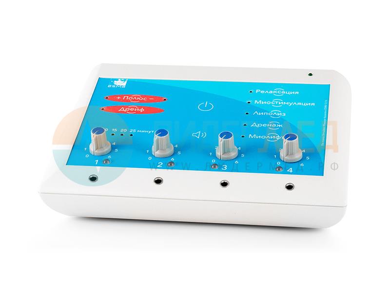 Предназначен для проведения следующих процедур: миолифт, релаксация, миостимуляция, электролиполиз, лимфодренаж.Применяется как в лечебных учреждениях, косметических кабинетах или как переносной для выездной работы. – Миолифт– Релаксация– Миостимуляция– Электролиполиз– Лимфодренаж– Режим «дрейф» | смена полярности– Программирование комплексной процедуры.