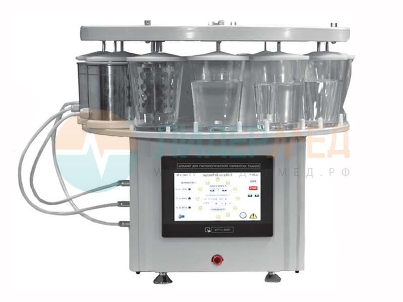 Аппарат АГТ 11-"ФМП" предназначен для автоматической гистологической обработки биологических образцов тканей: фиксации, обезвоживания, просветления в растворах и пропитке в парафине, а также других видов химической обработки тканей в процессе приготовления парафиновых срезов, подлежащих гистологическому исследованию при диагностировании заболеваний. Последовательный автоматический перенос обрабатываемых биологических образцов материала, находящихся в транспортных корзинках в сосуды с обрабатывающими растворами и термостаты с парафином согласно программам гистологической обработки.