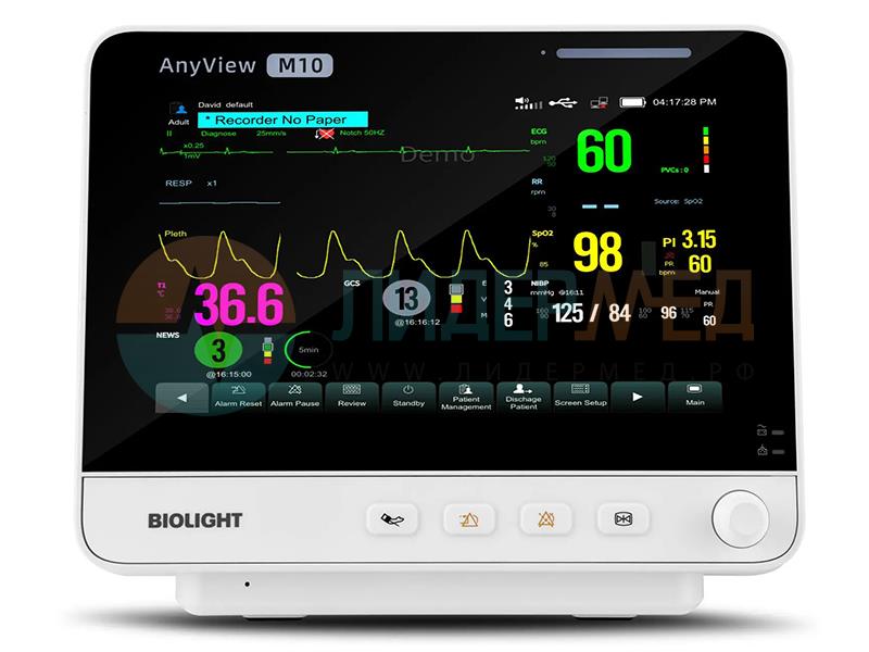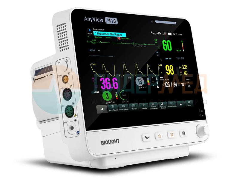 Монитор пациента Biolight AnyView M10 измеряет показатели жизненно важных функций пациентов всех возрастов. Предназначен для использования в медицинских учреждениях и во время транспортировки.
