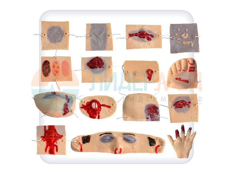Набор имитаторов ран является учебным пособием и предназначен для совместного использования с тренажерами-манекенами для отработки навыков оказания первой медицинской помощи при различных типах ранений.