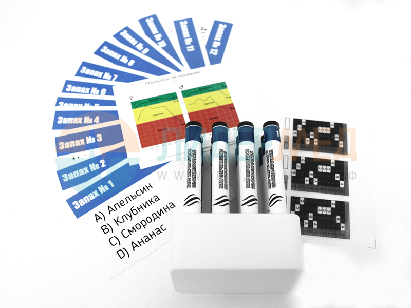Набор пахучих веществ предназначен для исследования функции обоняния. Набор пахучих веществ для ольфактометрии сертифицирован и подходит для лицензирования.