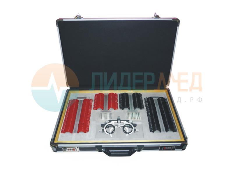 34 пары линз сферических с положительной рефракцией: 20 Дптр., 18 Дптр., 16 Дптр., 15 Дптр., 14 Дптр., 13 Дптр., 12 Дптр., 11 Дптр., 10 Дптр., 9 Дптр., 8 Дптр, 7 Дптр., 6.5 Дптр., 6 Дптр., 5.5 Дптр., 5 Дптр.,4.5 Дптр.,4 Дптр., 3.75 Дптр., 3.5 Дптр., 3.25 Дптр., 3 Дптр., 2.75 Дптр., 2.5 Дптр., 2.25 Дптр., 2 Дптр., 1.75 Дптр., 1.5 Дптр., 1.25 Дптр., 1 Дптр., 0.75 Дптр., 0.5 Дптр., 0.25 Дптр., 0.12 Дптр.
