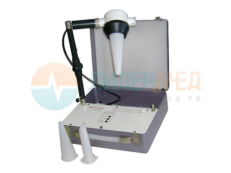 Представляет собой генератор ультравысокой частоты, питающий ртутно-кварцевую лампу ВРМ-1 – источник ультрафиолетового излучения. Облучатель предназначен для проведения местных, полостных и контактных облучений слизистых оболочек носоглотки, миндалин и небольших участков кожи с лечебными и профилактическими целями ультрафиолетовым спектром излучения с длиной волны 230- 290 Нм. Портативность аппарата позволяет использовать его как в физиотерапевтических кабинетах, так и на дому.