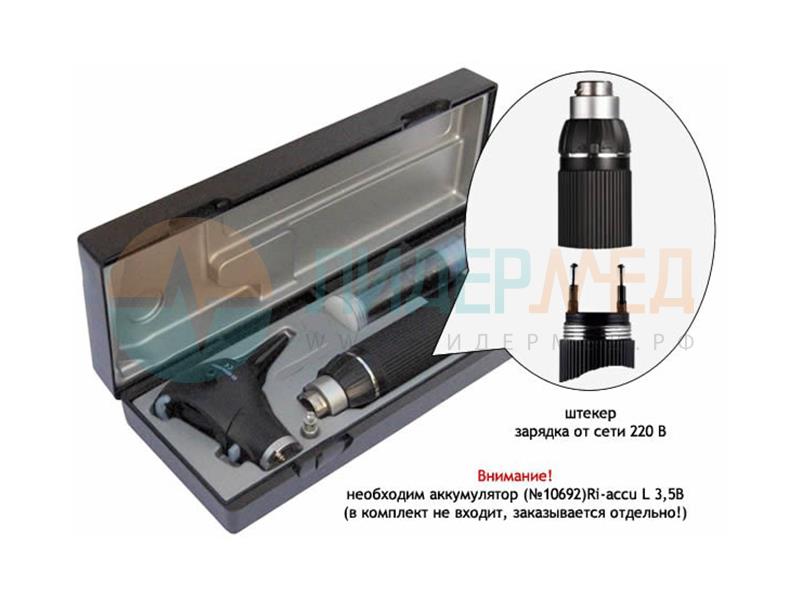Отоскоп для диагностики носа, уха и полости рта, с фиброоптическим ксеноновым (Xl) или LED освещением (без выталкивателя воронок). В комплекте отоскопа 4 черные многоразовые воронки 2, 3, 4, 5 мм и по 3 синие одноразовые воронки 2,5 и 4 мм.
