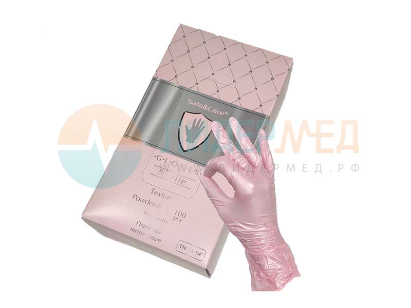 Материал – нитриловые. Стерильность – нестерильные. Текстура – текстурированные. Пудра – неопудренные. Манжета – с валиком. Цвет – перламутрово-розовый. Размеры: XS, S, M.