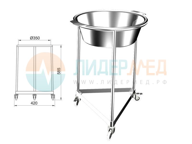 Предназначены для больничных отходов. Подставки под тазы ПТбо 13-01 и ПТбо 9-01 полностью идентичны. Различаются лишь тем, что подставка ПТбо 13-01 комплектуется пластмассовым тазом емкостью 13 литров, а подставка ПТбо 9-01 - тазом из нержавеющей стали емкостью 9 литров.Также есть вариант подставки под прямоугольный таз из нержавеющей стали с крышкой.