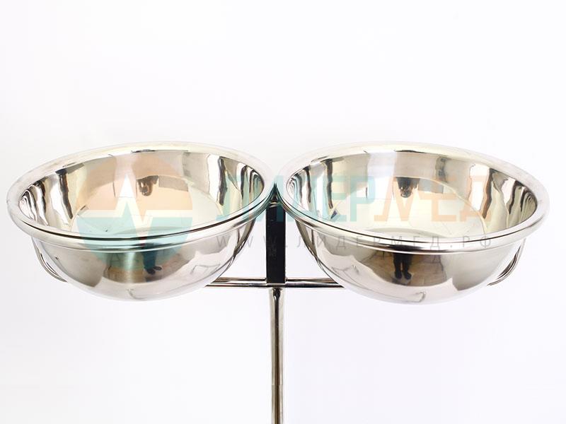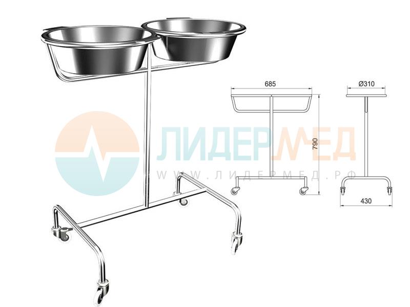 Предназначены для больничных отходов. Размещается соответственно один и два таза из нержавеющей стали емкостью 6,5 литров.Высокое расположение тазов повышает удобство пользования подставками.