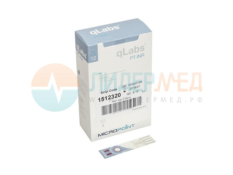 Тест-полоска qLabs® PT-INR Test Strip для определения показателей ПТВ-МНО в цельной крови 12 шт/упаковка.