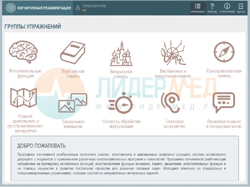 Система предназначена для нейропсихологической реабилитации различных нарушений когнитивной функций.