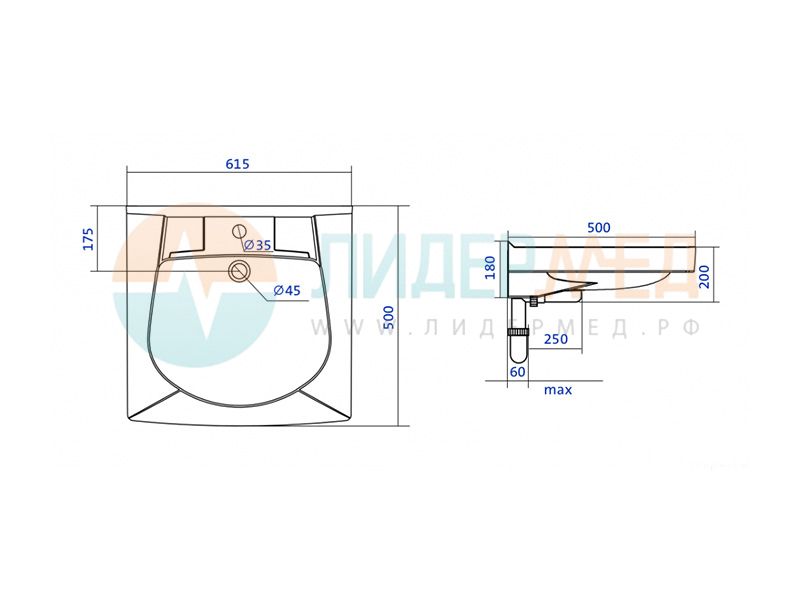 Прямоугольная плоская раковина предназначена для установки над стиральной машиной, удобна для использования людьми передвигающимися на креслах-колясках. Также есть возможность установки раковины с опорным поручнем, сифон (в комплекте) сдвинут к стене, что позволяет подъезжать на инвалидном кресле вплотную.