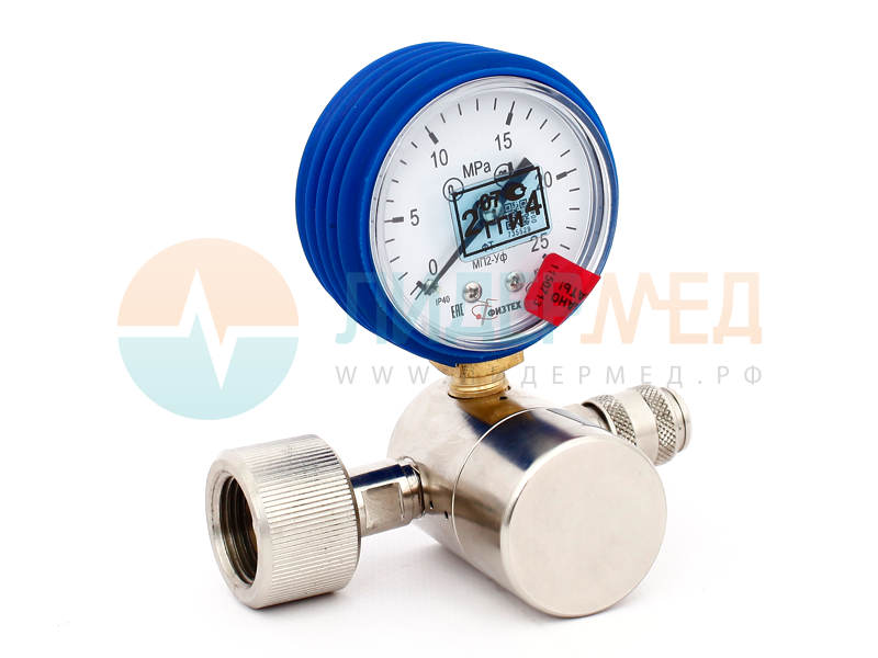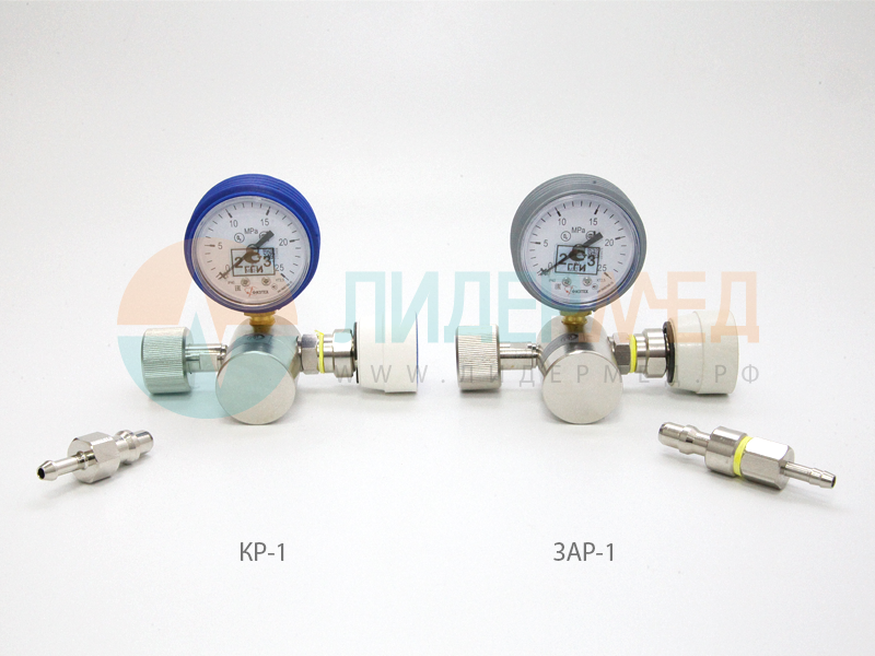 Редуктор кислородный КР-1 предназначен для понижения давления кислорода до давления питания медицинских аппаратов, таких как ИВЛ. Присоединяется к вентилю кислородного баллона с давлением до 19,6 МПа (200 кгс/см2) любой вместимости без специального инструмента.