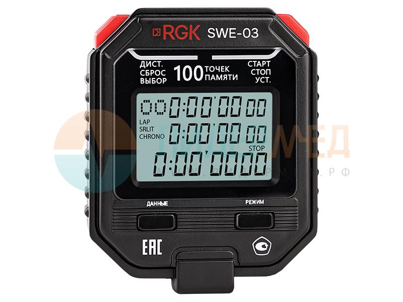 Секундомер электронный RGK SWE с поверкой предназначен для определения продолжительности промежутков времени, с ручным запуском и остановом, а также может использоваться в качестве метронома и как обычные часы с календарем и функцией будильника.Доступные режимы работы: секундомер, таймер с обратным отсчетом, метроном с настраиваемой частотой сигнала, часы с календарем, будильник.