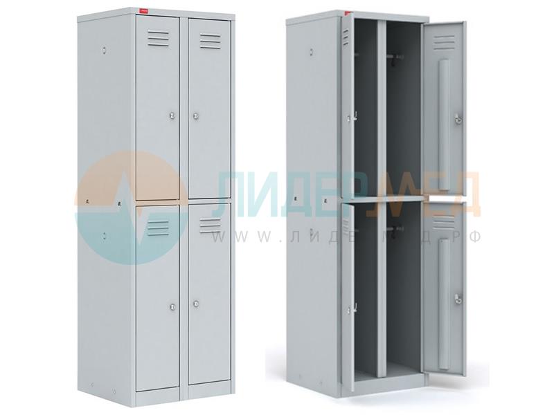 Шкаф разборный металлический двухсекционный с четырьмя отделениями предназначен для хранения сменной одежды.