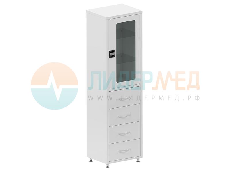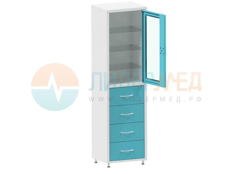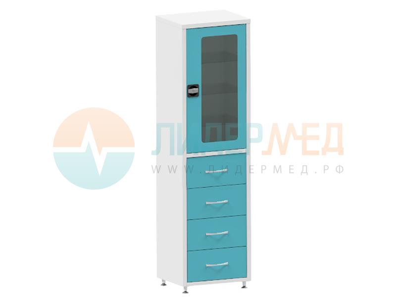 Шкаф медицинский двухсекционный одностворчатый с ящиками. Предназначен для хранения принадлежностей в медицинских учреждениях.