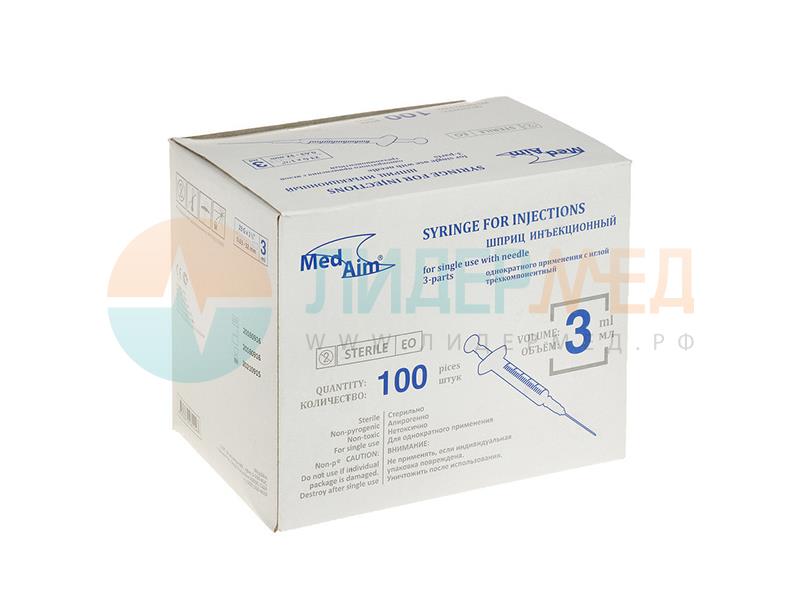 Шприцы однократного применения, трехкомпонентные с манжетой на поршне. Игла из медицинской стали марки SUS304 с заточкой трехгранной копьевидной.