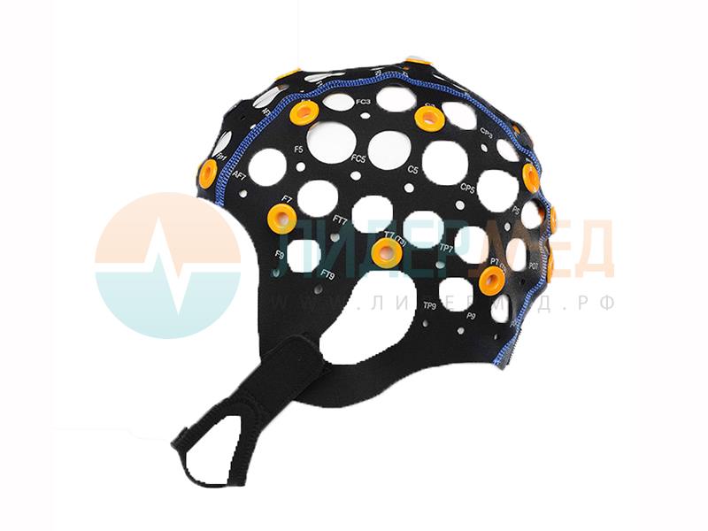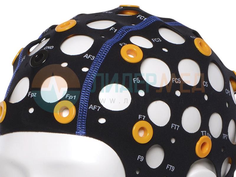 Маркированный текстильный шлем с предустановленными фиксирующими кольцами (до 51шт) в соответствии с системой 10‑10 (неполная).