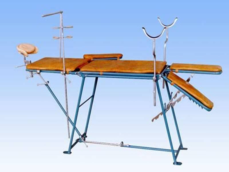 Стол операционный полевой предназначен для проведения хирургических операций в подразделениях, частях и полевых медицинских учреждениях. Применяется для эксплуатации внутри полевых помещений.Стол состоит из основной рамы с двумя опорами, головной , средней, двух ножных секций с матрацами и съемных приспособлений: кронштейна для навешивания ширмы , ремнями для фиксации рук и тела пациента, регулируемыми ногодержателями, столиком для руки с подушкой, подголовником, устанавливаемых на резьбе держателя для сосудов. Регулировка положений секций, подголовника, ногодержателя и др. осуществляется вручную с помощью винтовых зажимов и гребенок.